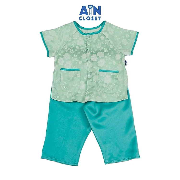 Bộ quần áo Bà Ba Dài tay ngắn bé gái họa tiết Hoa Cúc Xanh Ngọc Gấm Lụa - AICDBGV96PAY - AIN Closet
