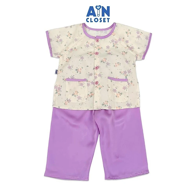 Bộ quần áo Bà ba Dài tay ngắn bé gái họa tiết Hoa Tím Cẩm Quỳ lụa - AICDBGMULR4B - AIN Closet