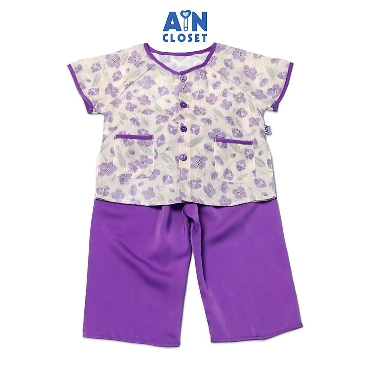 Bộ quần áo bà bà dài tay ngắn bé gái họa tiết Hoa tím lụa - AICDBG59ZRMW - AIN Closet