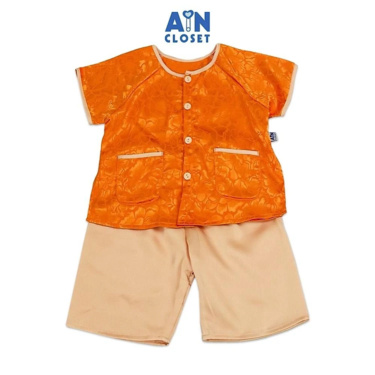 Bộ quần áo Bà ba Lửng bé gái họa tiết Hoa Cam Be gấm lụa - AICDBTKNVJ18 - AIN Closet