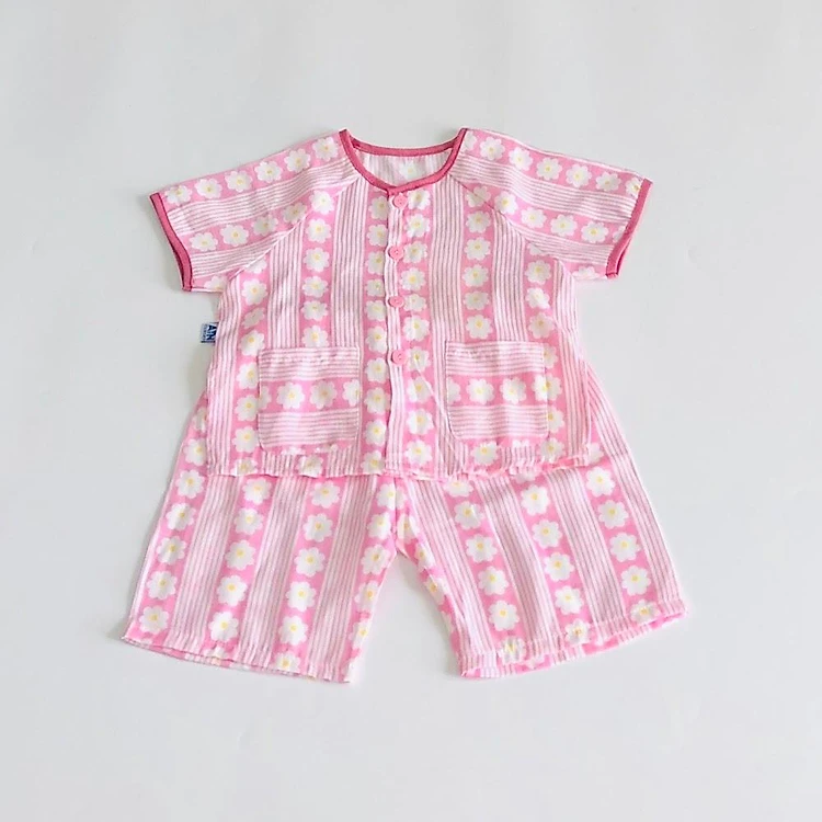 Bộ quần áo bà ba ngắn bé gái họa tiết Hoa kẻ hồng - AICDBGI9WLYD - AIN Closet
