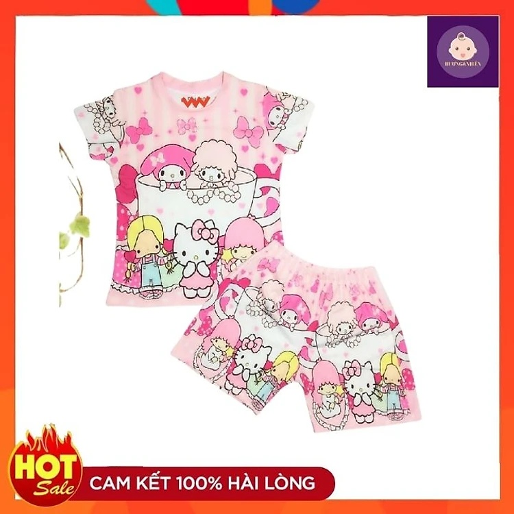 Bộ quần áo bé gái hình mèo Kitty - quần áo mặt ở nhà từ 9-42kg - Vải thun cotton lạnh - Giặt không vỡ hình - Hương Nhiên