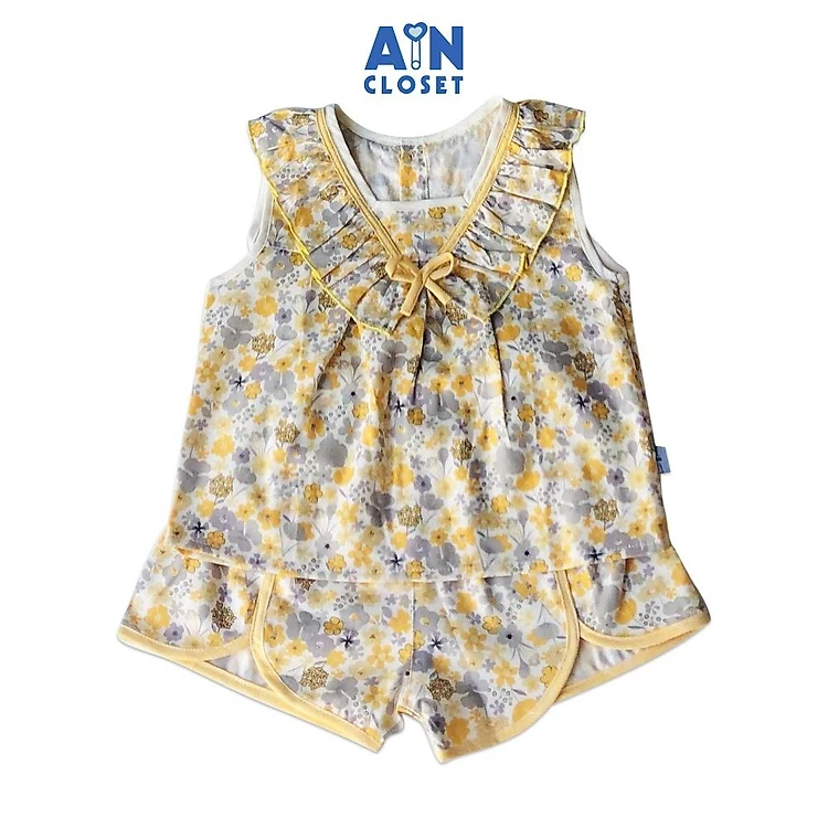 Bộ quần áo bé gái họa tiết Hoa vàng xám cotton - AICDBGUZJUHT - AIN Closet