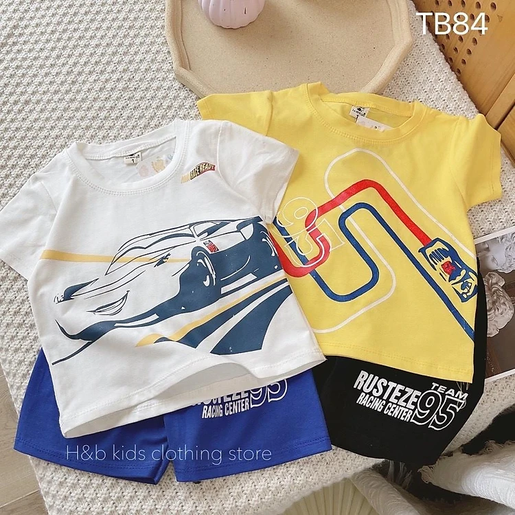Bộ quần áo bé trai cộc tay vải cotton mềm mịn, thoáng mát, in hình ô tô đua siêu ngầu size từ 8 - 32 kg