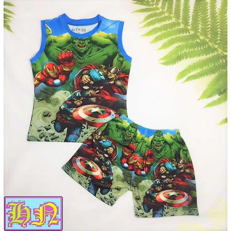 Bộ quần áo bé trai hình siêu nhân từ 10-43kg-chất liệu vải thun lạnh in 3d-giặt không vỡ hình - Hương Nhiên