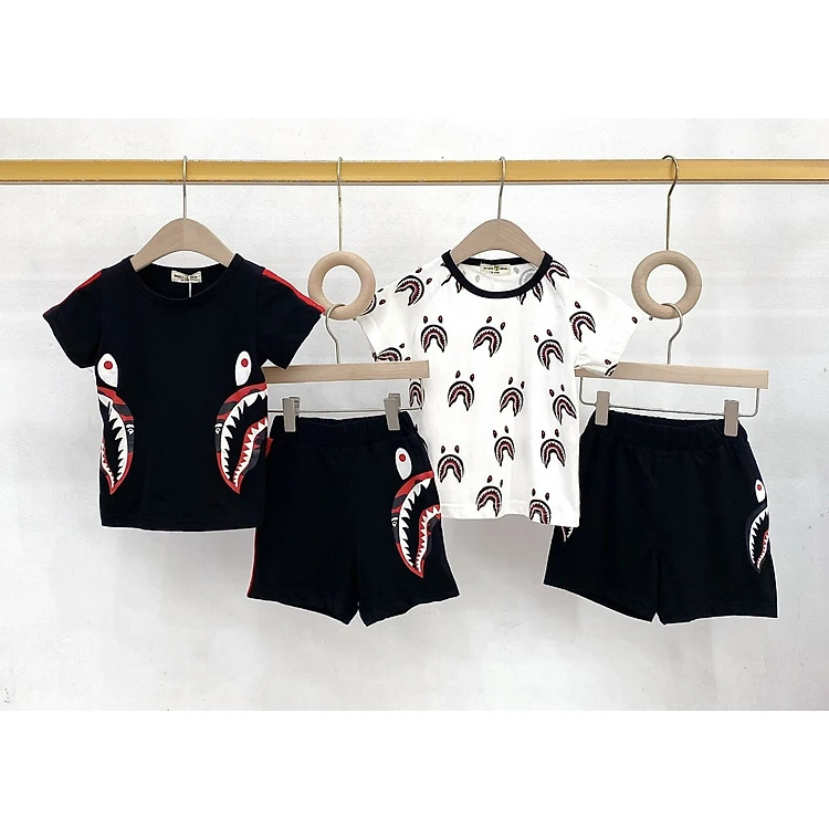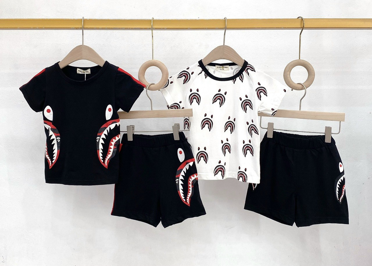 Bộ đồ bé trai chất liệu cotton, hoạ tiết cá mập, màu sắc trắng đen