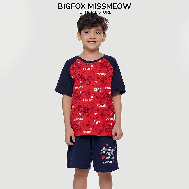 Bộ quần áo cộc tay bé trai Bigfox Miss Meow, chất cotton mặc hè size đại 3,7,9,11 tuổi 30kg 40kg