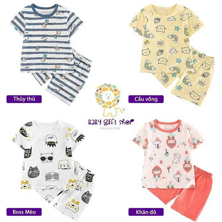 Bộ quần áo cộc tay bé trai đồ bộ mặc nhà trẻ em bé trai áo cộc tay thun cotton vải thoáng mẫu 1/2