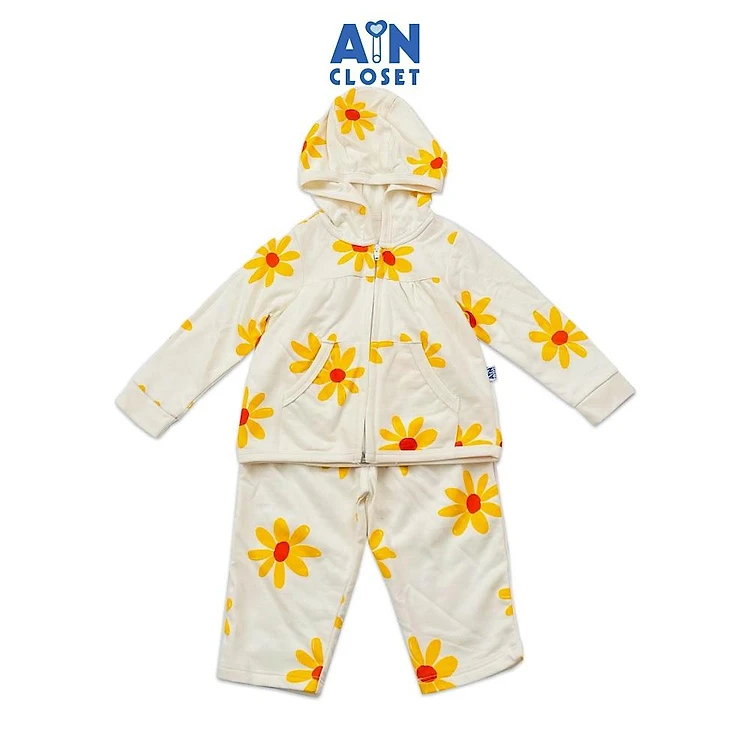 Bộ quần áo dài bé gái có nón họa tiết Hoa Dã Quỳ vàng thun da cá - AICDBGMW2OHU - AIN Closet