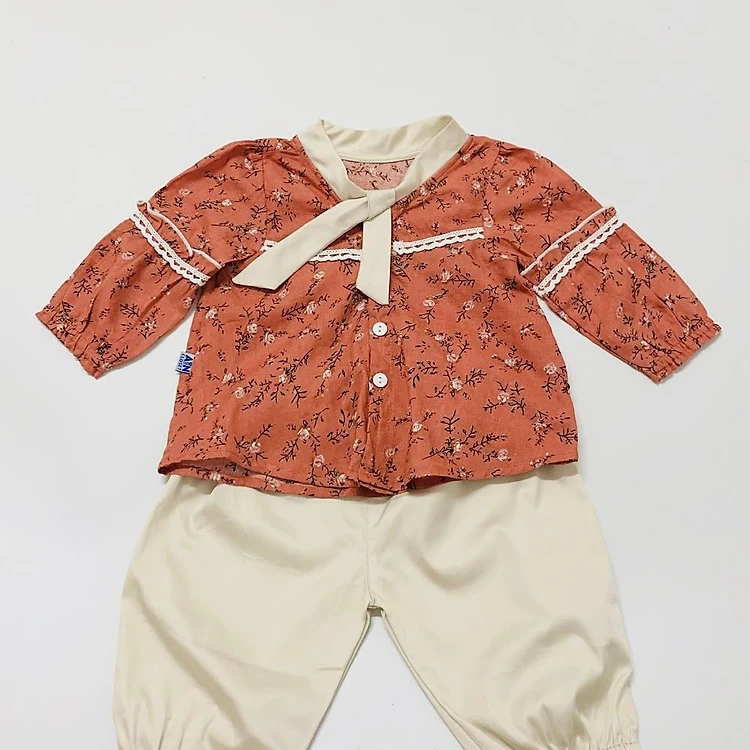 Bộ quần áo dài bé gái Hoa nhí nâu - AICDBGHRNI9J - AIN Closet