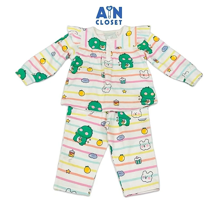 Bộ quần áo Dài bé gái hoạ tiết Bé Long Xanh Thun cotton - AICDBGZBU5ES - AIN Closet