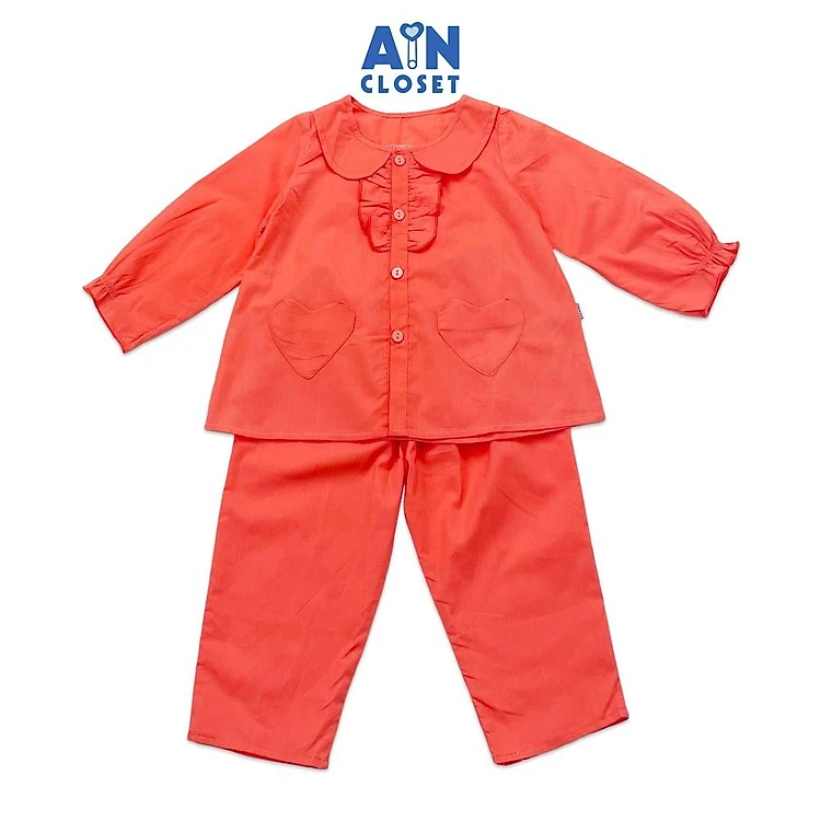 Bộ quần áo dài bé gái họa tiết Cam Trơn túi tim cotton - AICDBGQEUNJT - AIN Closet