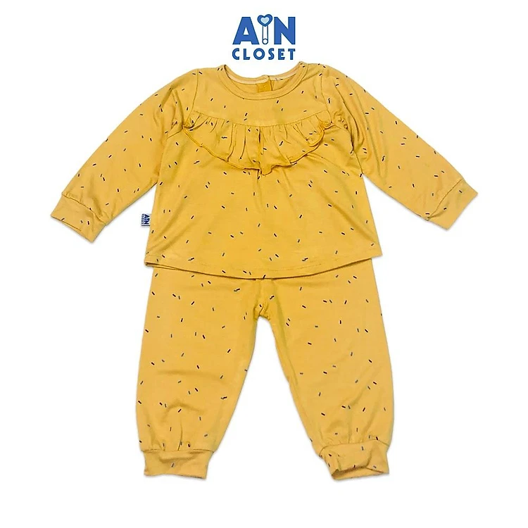 Bộ quần áo dài bé gái họa tiết Chấm bèo vàng thun cotton - AICDBGH0L6BP - AIN Closet