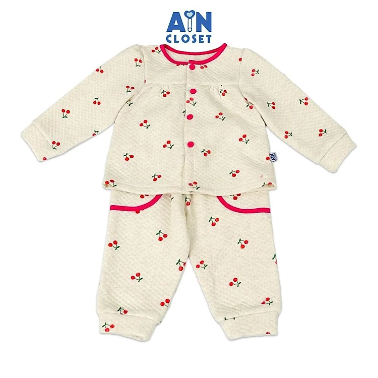 Bộ quần áo dài bé gái họa tiết Cherry Nhí Hồng chần bông - AICDBGHARLNF - AIN Closet