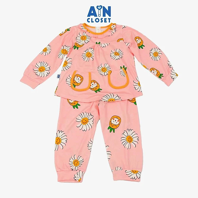 Bộ quần áo Dài bé gái họa tiết Cúc Dứa Hồng thun cotton - AICDBGQELEA3 - AIN Closet