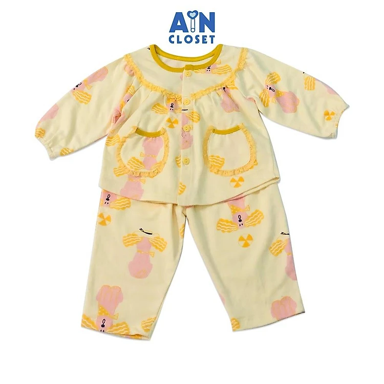 Bộ quần áo dài bé gái họa tiết Cún hồng tai vàng thun da cá - AICDBGFOQR2J - AIN Closet