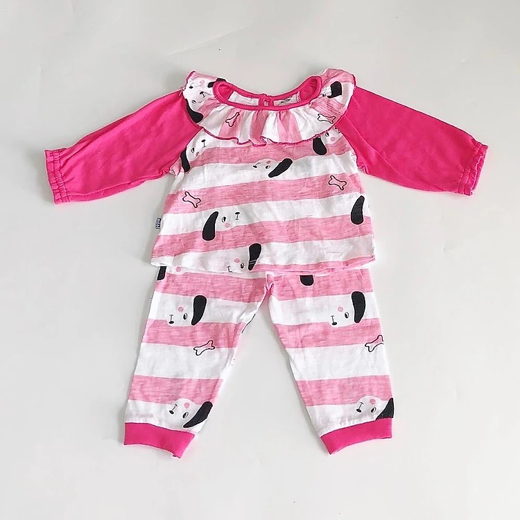 Bộ quần áo dài bé gái họa tiết Cún hồng thun cotton - AICDBGF6X8GM - AIN Closet