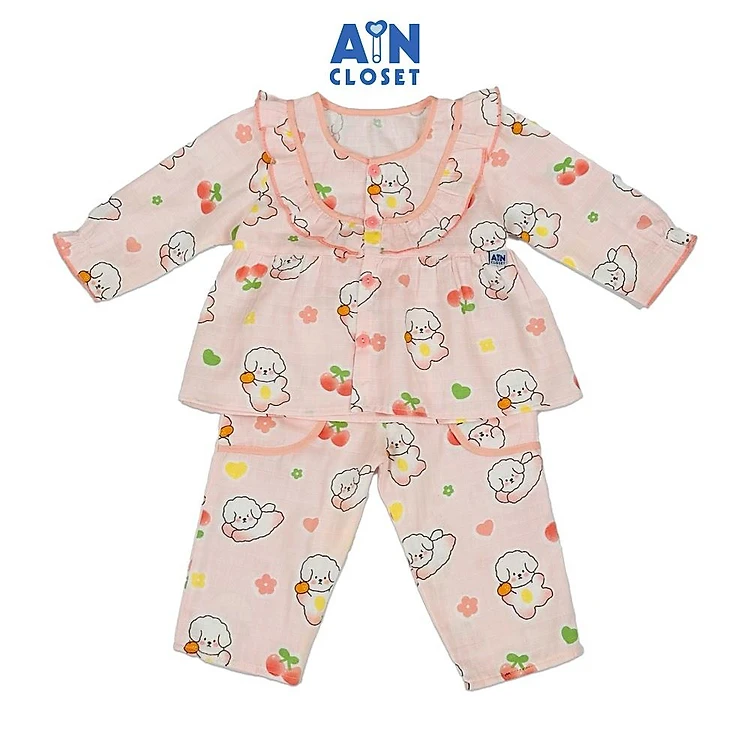 Bộ quần áo Dài bé gái họa tiết Cún Hồng Xô sợi tre - AICDBGP8ZCSP - AIN Closet