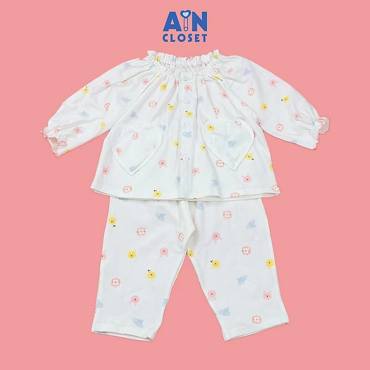 Bộ quần áo Dài bé gái họa tiết Động Vật Nhí Trắng Thun cotton - AICDBGD0DJM6 - AIN Closet