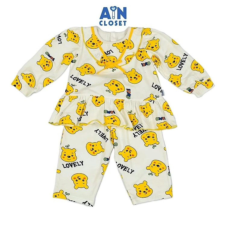 Bộ quần áo Dài bé gái họa tiết Gấu Pooh Vàng Thun cotton - AICDBGCFG4WO - AIN Closet