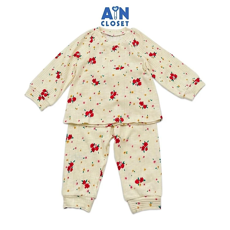 Bộ quần áo dài bé gái họa tiết hoa Bát Tiên đỏ thun cotton - AICDBGIL8PZK - AIN Closet