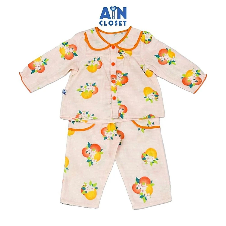 Bộ quần áo Dài bé gái họa tiết Hoa Cam Vàng Xô sợi tre - AICDBGLI5UWD - AIN Closet