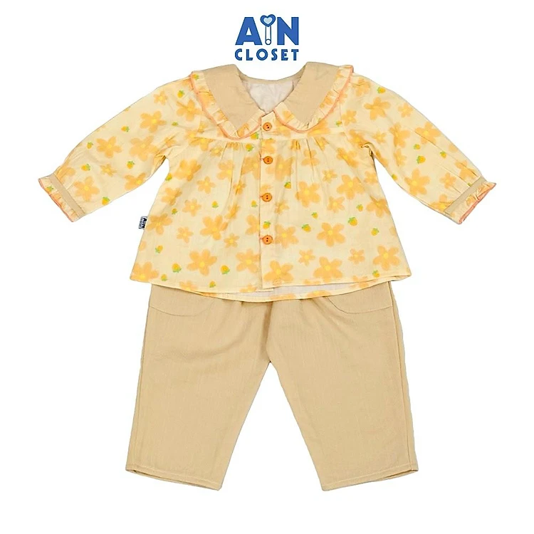 Bộ quần áo Dài bé gái họa tiết hoa Cúc Mai Cam cotton - AICDBGQCQJTO - AIN Closet