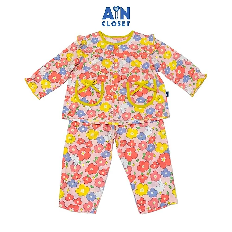 Bộ quần áo Dài bé gái hoạ tiết Hoa Đỏ Lanh lụa - AICDBGFUCFXV - AIN Closet
