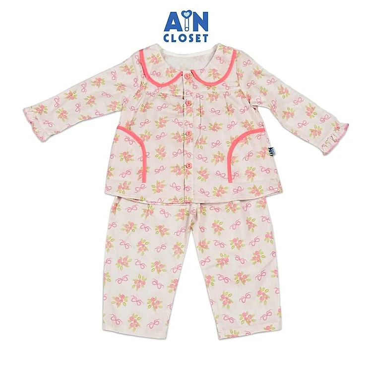 Bộ quần áo Dài bé gái họa tiết Hoa Hồng Nơ Cotton - AICDBGLGJGKE - AIN Closet