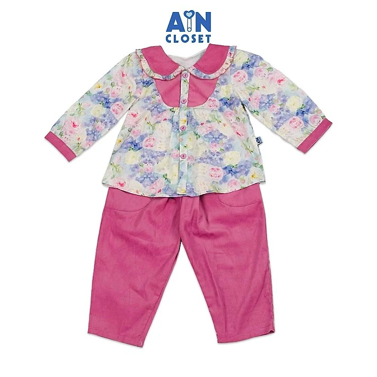 Bộ quần áo Dài bé gái họa tiết hoa Hồng Xoăn Tím cotton - AICDBGUF108V - AIN Closet