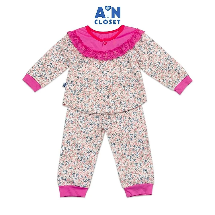 Bộ quần áo dài bé gái họa tiết Hoa nhí hồng xanh thun cotton - AICDBGNH0K7G - AIN Closet