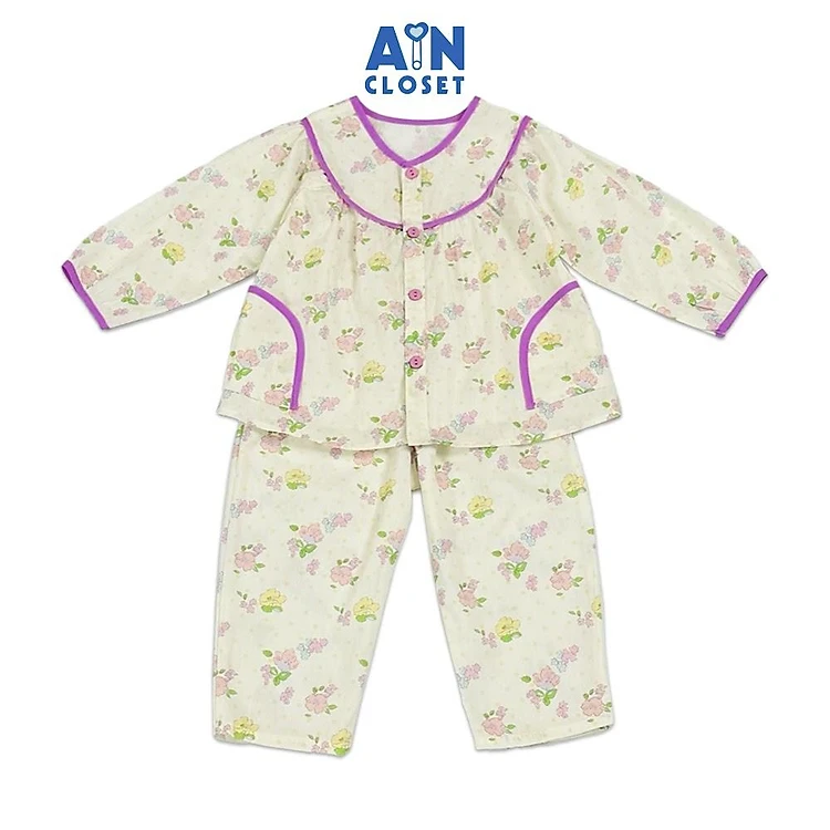 Bộ quần áo Dài bé gái họa tiết Hoa Nhí Tím Cotton - AICDBGNAAVRK - AIN Closet