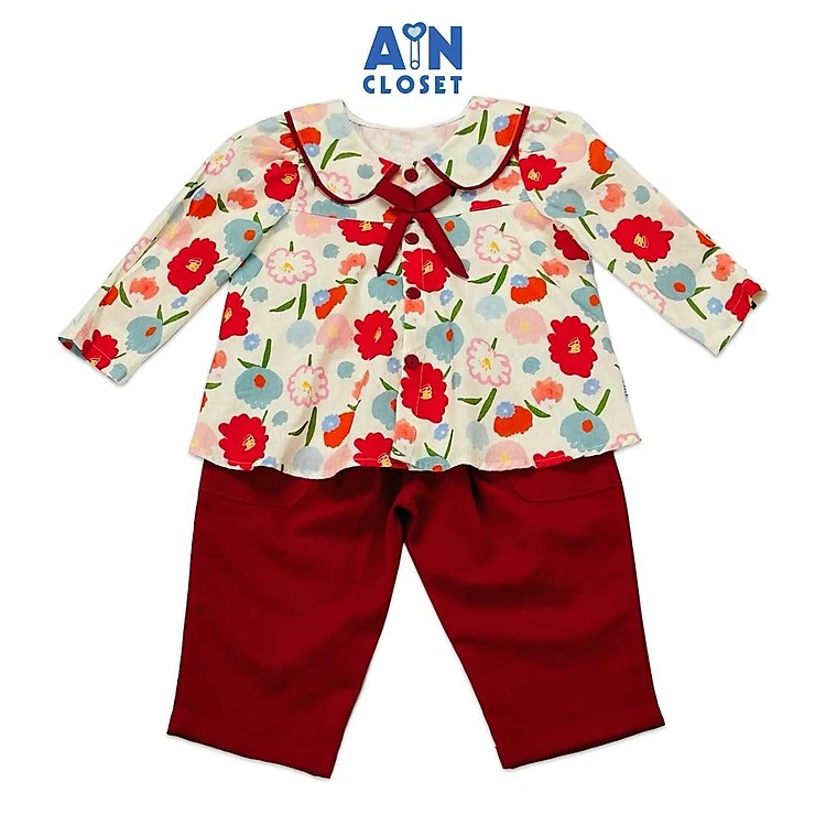 Bộ quần áo dài bé gái họa tiết Hoa Nơ quần đỏ cotton - AICDBGAZFWIM - AIN Closet