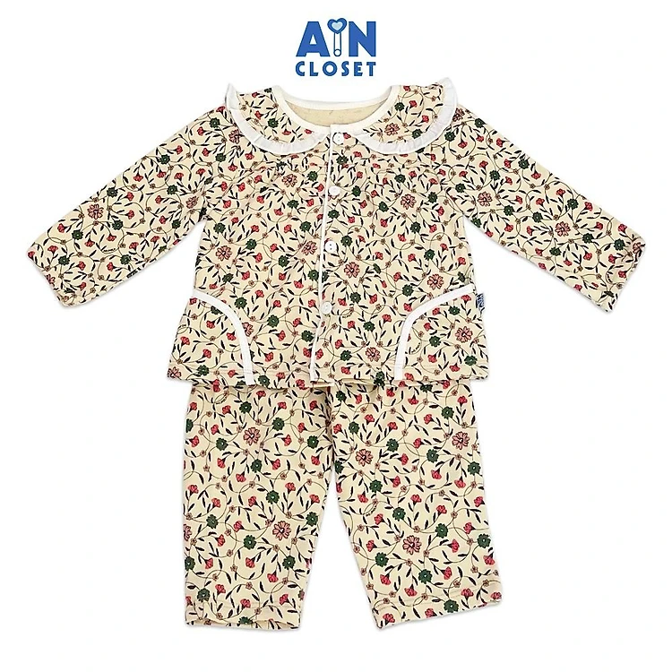 Bộ quần áo dài bé gái họa tiết hoa Tóc Tiên xanh thun da cá - AICDBGTDIE6A - AIN Closet
