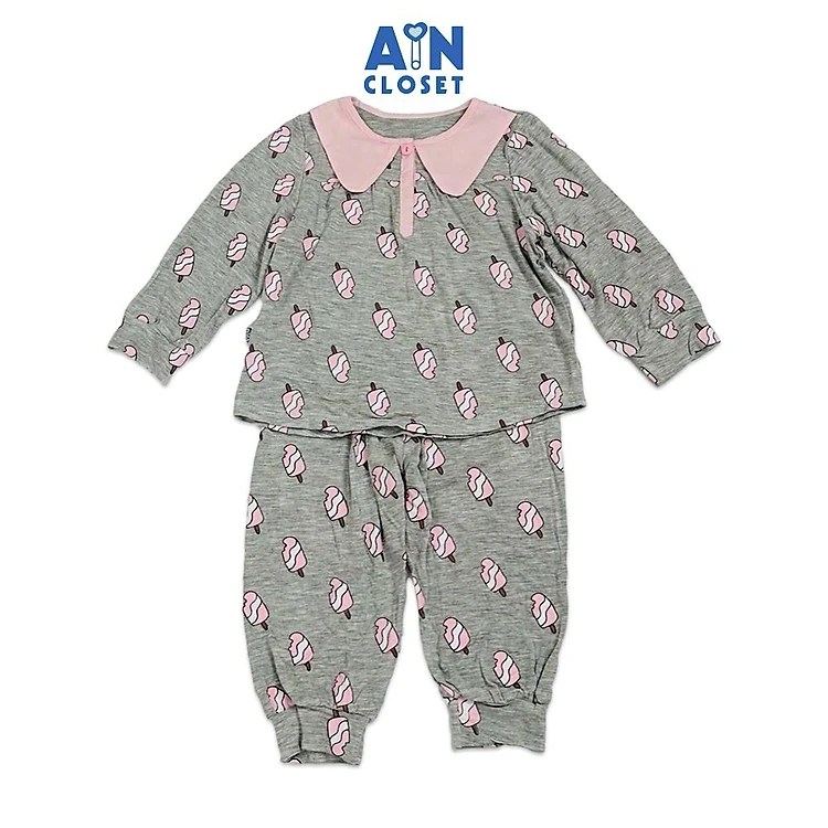 Bộ quần áo Dài bé gái họa tiết Kem Que hồng nền xám thun cotton - AICDBG333WUC - AIN Closet