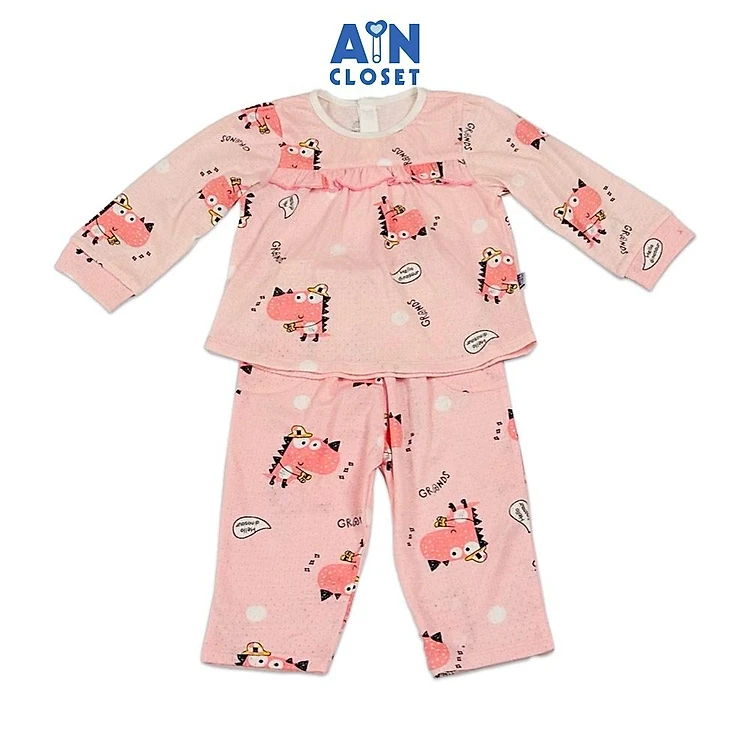 Bộ quần áo Dài bé gái họa tiết Khủng Long Hồng Thun cotton - AICDBGPW7RHV - AIN Closet