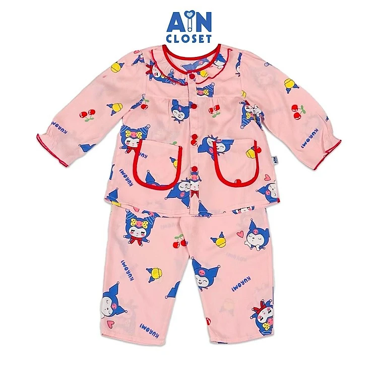 Bộ quần áo Dài bé gái họa tiết Thỏ Xanh nền Hồng Lanh lụa - AICDBGLJ47FO - AIN Closet