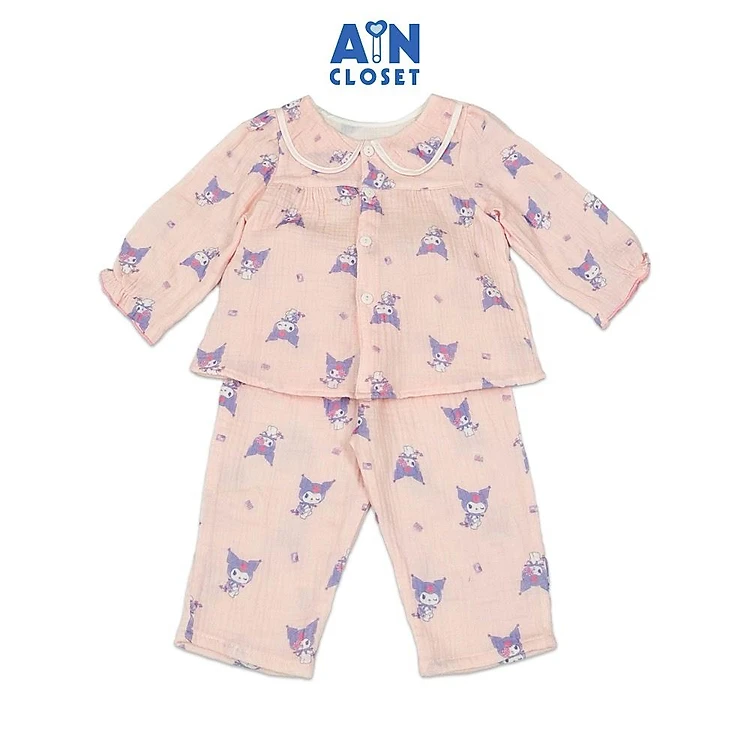 Bộ quần áo Dài bé gái hoạ tiết Thỏ Tím nền Hồng Xô muslin - AICDBGEM0OT5 - AIN Closet