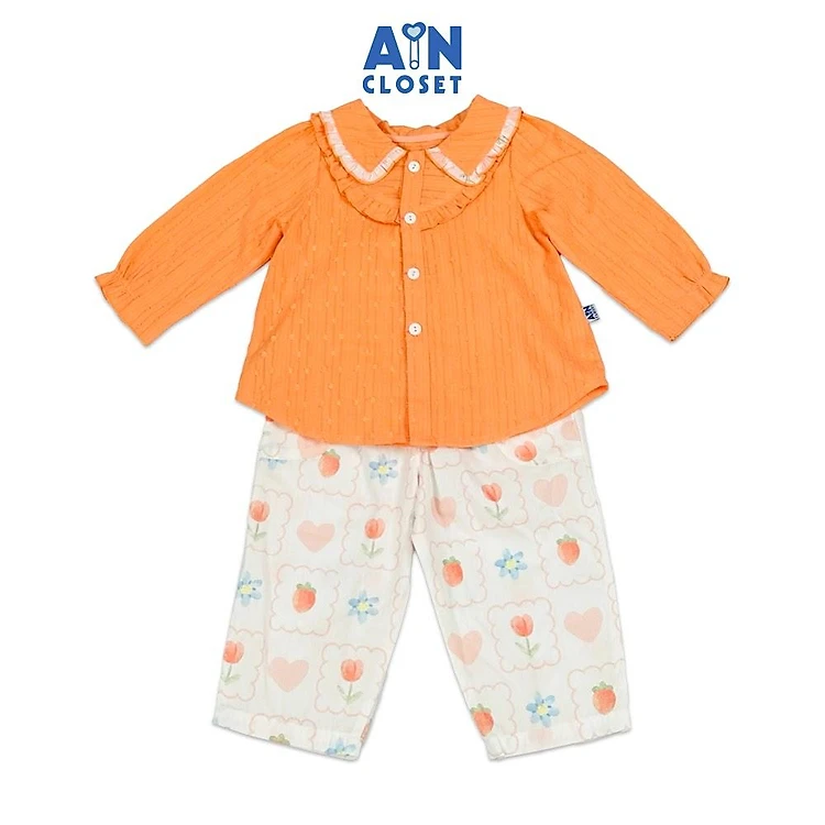 Bộ quần áo Dài bé gái họa tiết Sơ Mi Cam Hạt cotton - AICDBGJFU0JY - AIN Closet