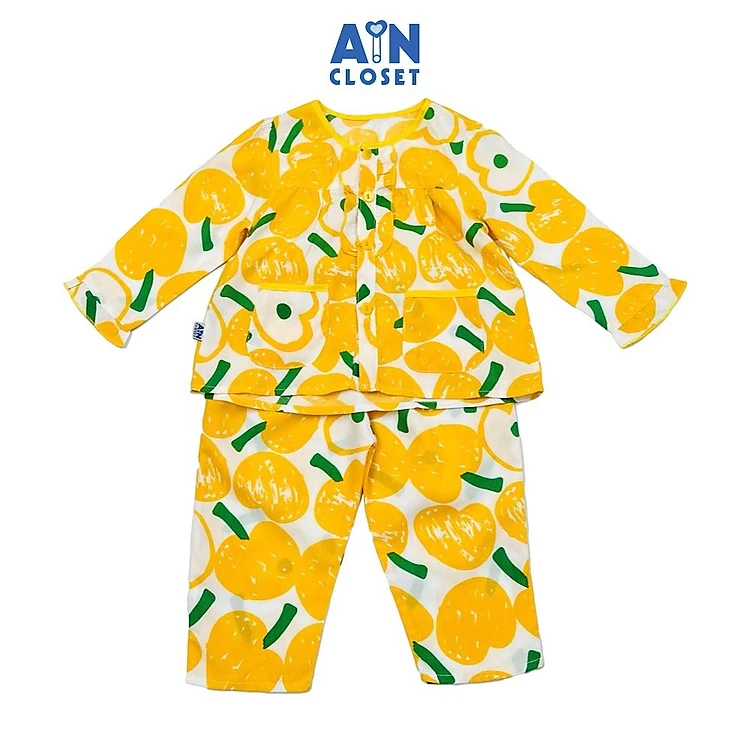 Bộ quần áo Dài bé gái hoạ tiết Táo Vàng Lanh lụa - AICDBG2FTIAV - AIN Closet