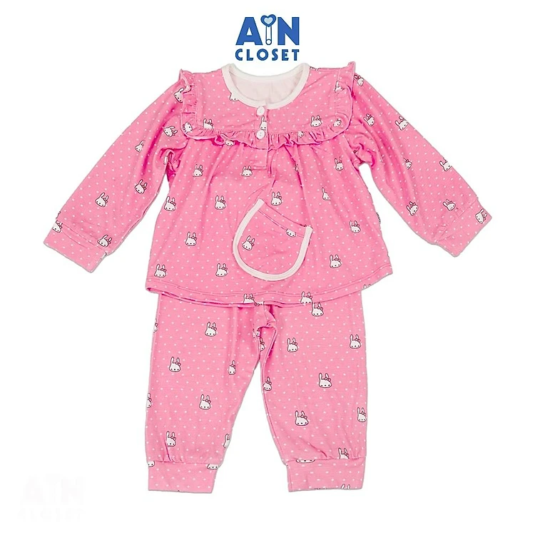 Bộ quần áo Dài bé gái họa tiết Thỏ Bi Hồng Thun lụa - AICDBGNELQVB - AIN Closet