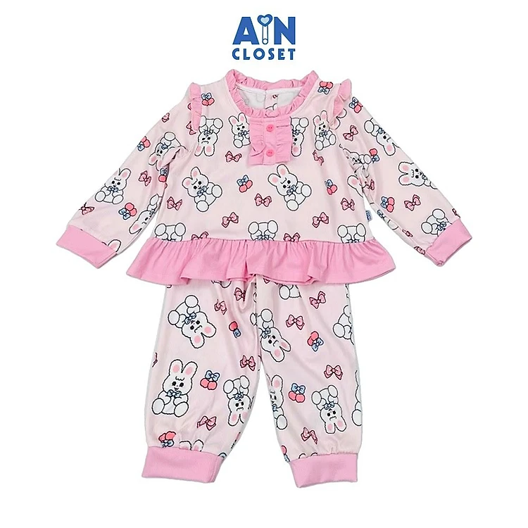 Bộ quần áo Dài bé gái họa tiết Thỏ Cherry Hồng Thun cotton - AICDBGGIDKOF - AIN Closet