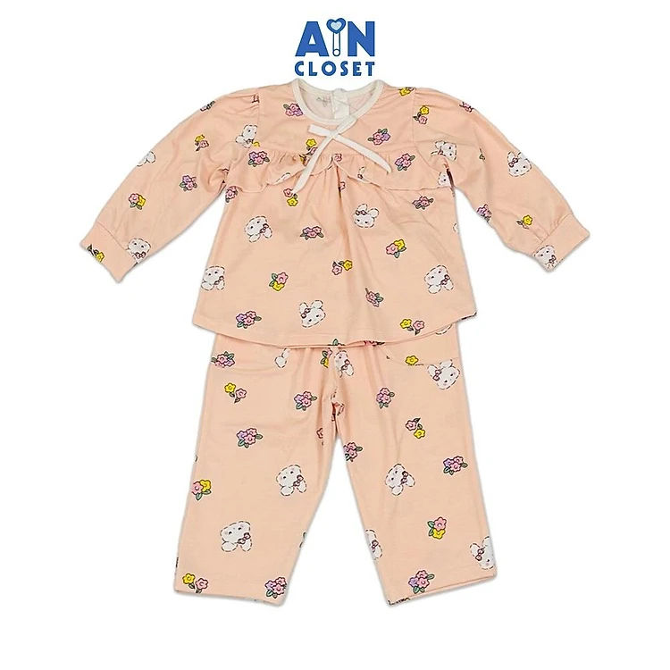 Bộ quần áo Dài bé gái hoạ tiết Thỏ Hoa Hồng Cam Thun cotton - AICDBG3CGBLD - AIN Closet