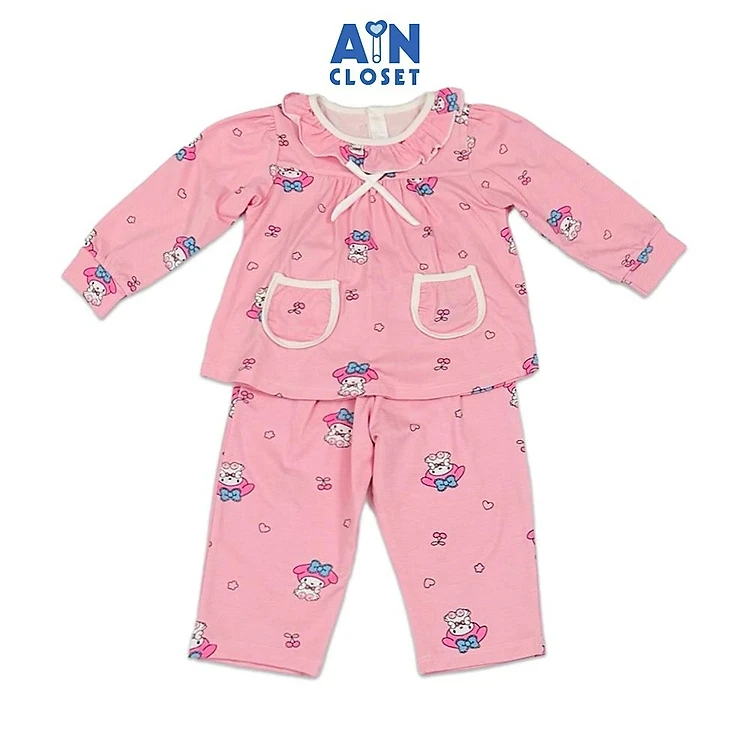 Bộ quần áo Dài bé gái họa tiết Thỏ Melo Hồng Thun cotton - AICDBGELLEJI - AIN Closet