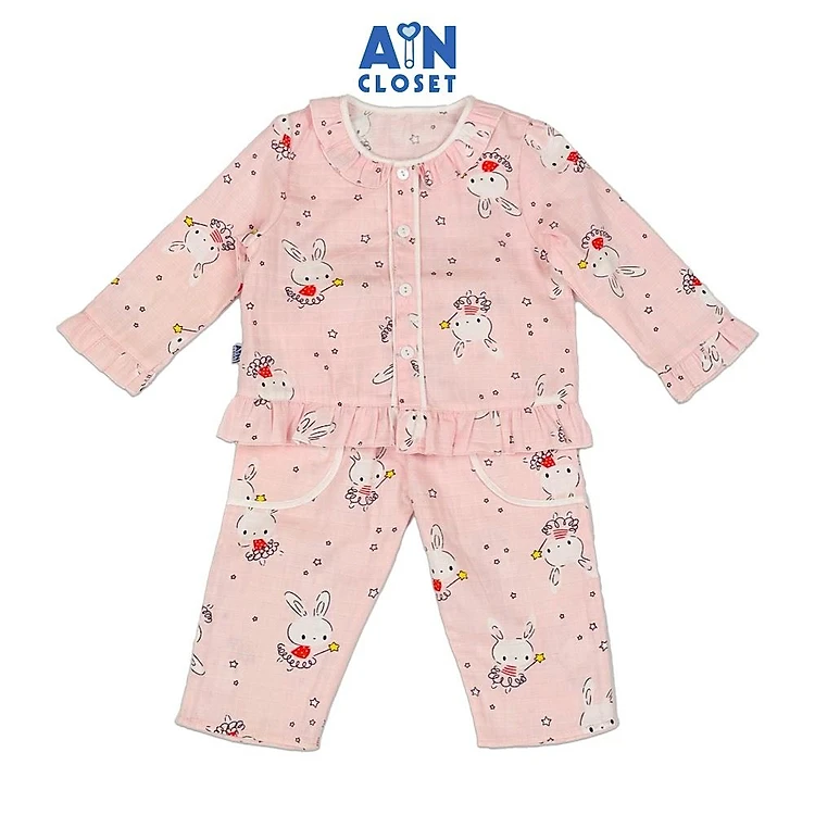 Bộ quần áo Dài bé gái họa tiết Thỏ Sao Hồng Xô sợi tre - AICDBG8VNDTG - AIN Closet