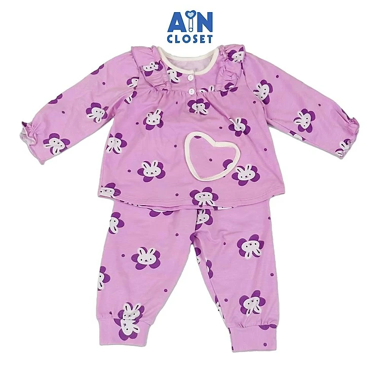 Bộ quần áo Dài bé gái họa tiết Thỏ Tím Thun lụa - AICDBGLAU8DW - AIN Closet