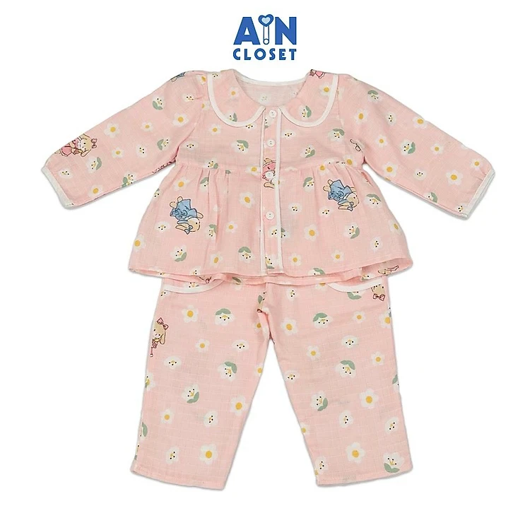 Bộ quần áo Dài bé gái hoạ tiết Thỏ Vàng Hoa Trắng nền hồng Xô sợi tre - AICDBGVZSMYW - AIN Closet