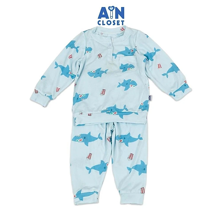 Bộ quần áo Dài bé trai họa tiết Cá Mập Xanh thun cotton - AICDBTVLVYLY - AIN Closet