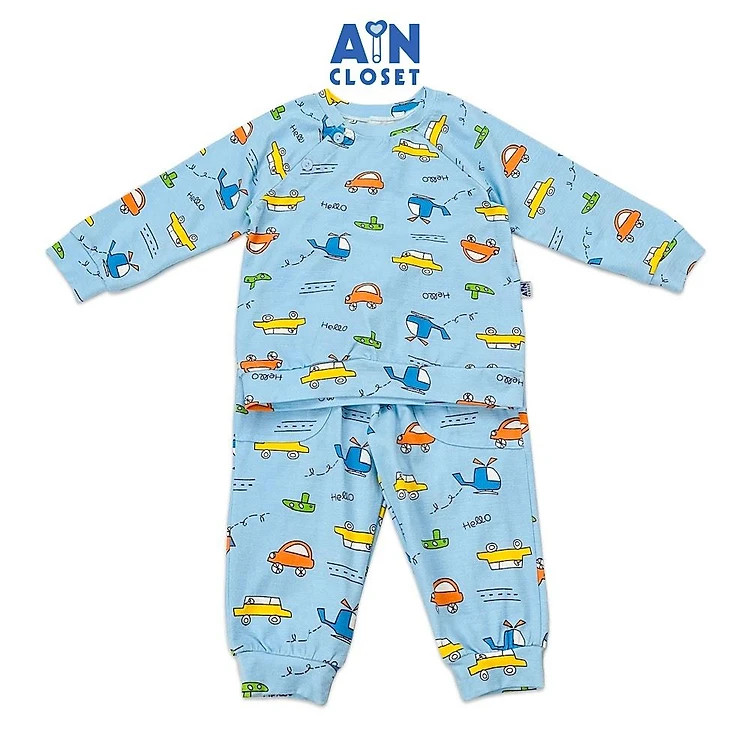 Bộ quần áo dài bé trai họa tiết Hello xanh thun cotton - AICDBTV25O99 - AIN Closet