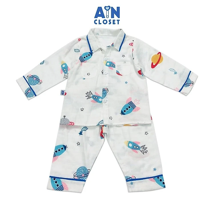 Bộ quần áo dài bé trai họa tiết Tên lửa xanh xô sợi tre - AICDBG6V4KAO - AIN Closet